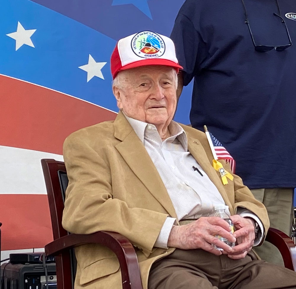Facing heavy artillery around Kesternick, Irving’s Company engaged in the Battle of the Bulge at the Ardennes during one of the coldest winters of the war. On January 12, 1944, the German’s conducted a counter offensive. As his Company moved near Kesternik they received heavy rifle and machine gun fire with nonstop house to house fighting when a round ricocheted off Irving’s helmet during the battel, his first close call. It was the beginning of the Battle of the Bulge.