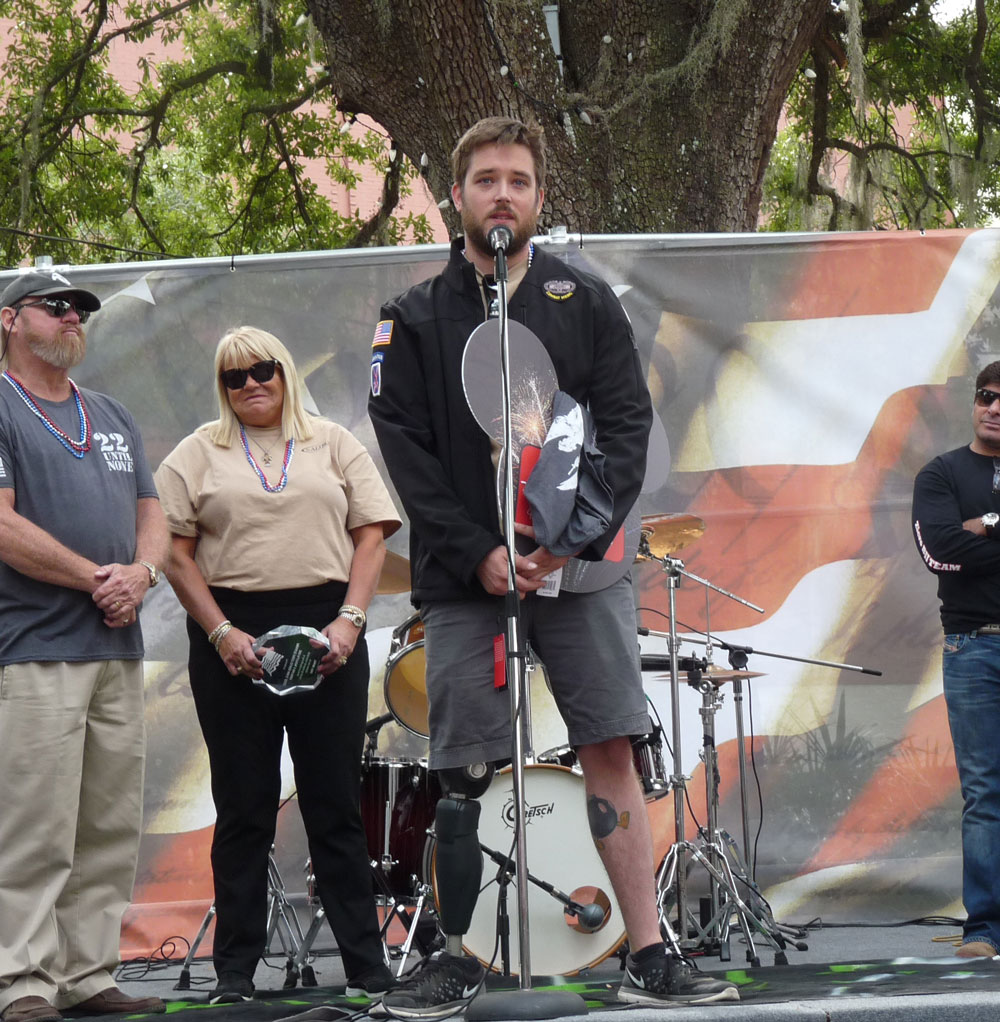 Transported by truck, and thanks to the lifesaving measures by his men, 18 minutes after the blast SSG Murphy was in a field hospital being prepared for medevac to the Baghdad ER where he received several units of blood. Stabilized for transport to Landstuhl, Germany, SSG Murphy arrived at Walter Reed Army Medical Center within days of his injuries and remained there for a year enduring nearly thirty surgeries. SSG Murphy is grateful for the support he has received from the Tallahassee community.